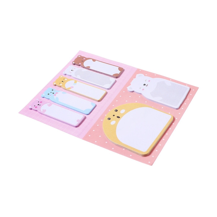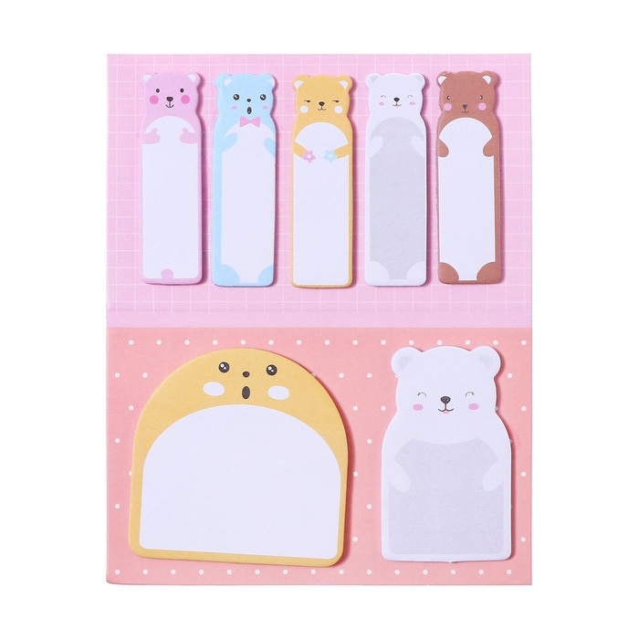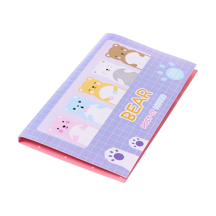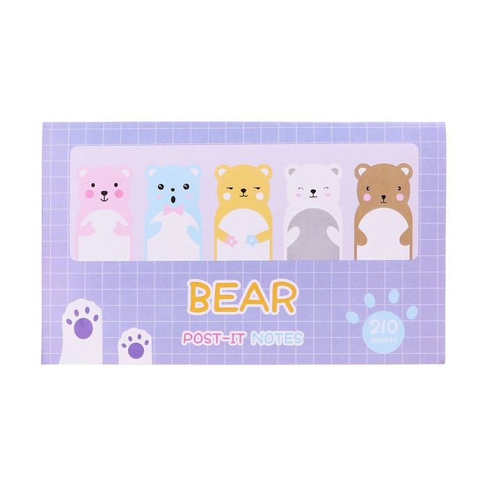 Блок-закладки с липким краем из бумаги, 20л*7 цветов, 57*17мм, 60*60 мм, 57*36мм, Мишки