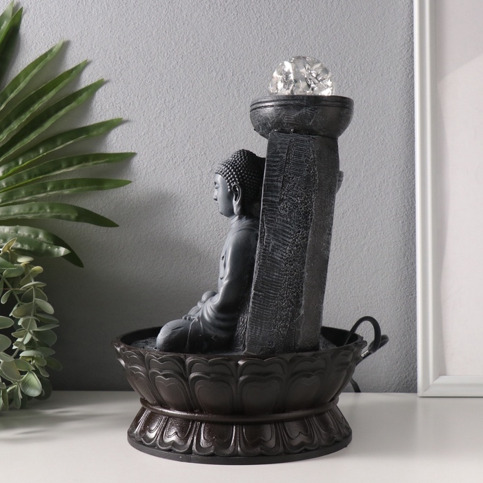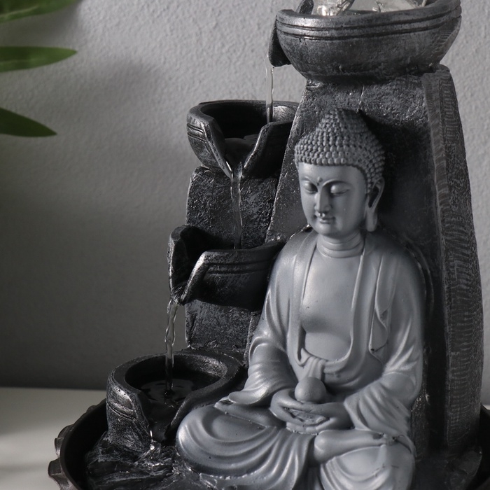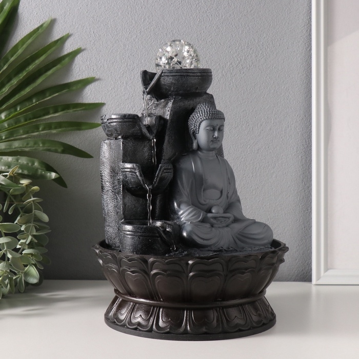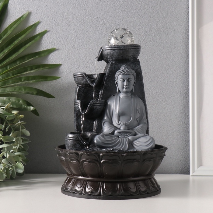 Фонтан настольный от сети, подсветка "Будда у скалы с чашами" серый 20х20х30 см