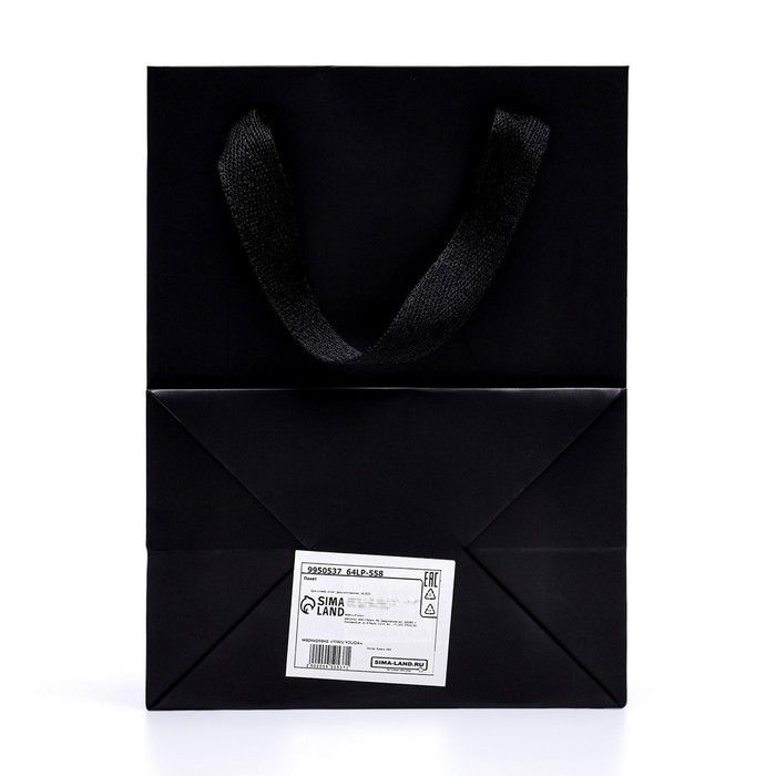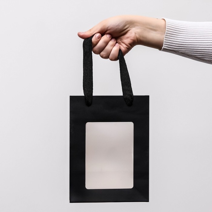 Пакет подарочный, с окном, 20 х 15 х 10 см, черный, 1шт.