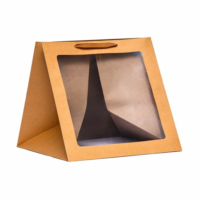 Пакет крафт с квадратным дном и окном 40 Х 40 Х 40 см Крафт, 1шт.