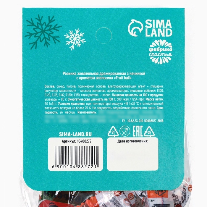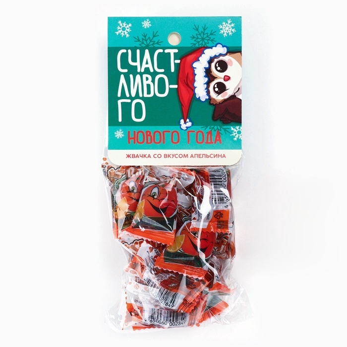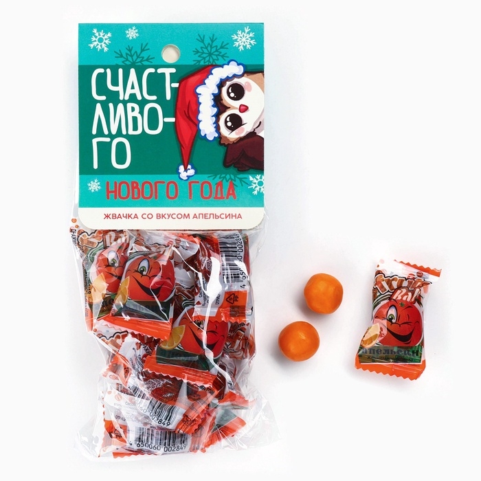 Жевательная резинка «Счастливого нового года» с начинкой и ароматом апельсина, 50 г.