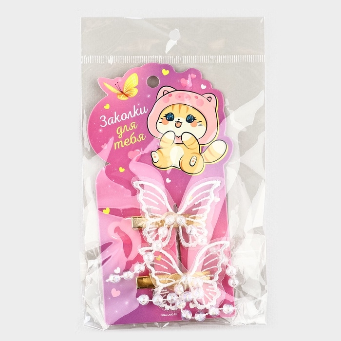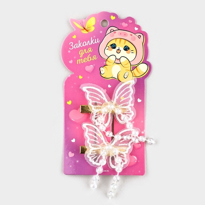 Заколки для волос с бабочками «Для тебя», 2 шт, 5 х 3 см