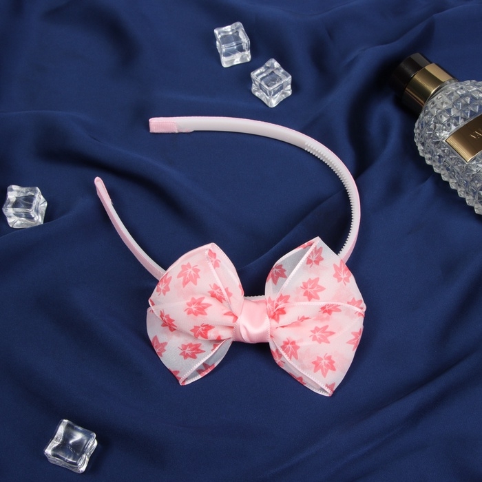 Ободок для волос "Бантик крошка" листья, 10х1 см, розовый