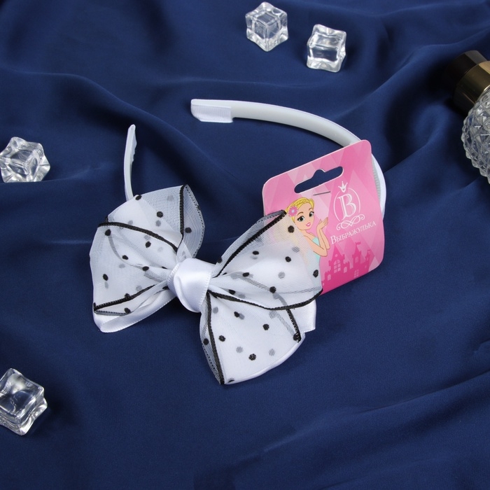 Ободок для волос "Бантик крошка" нежность горох, 10х1 см, чёрно-белый