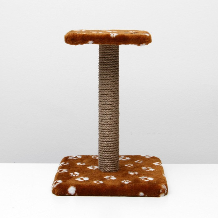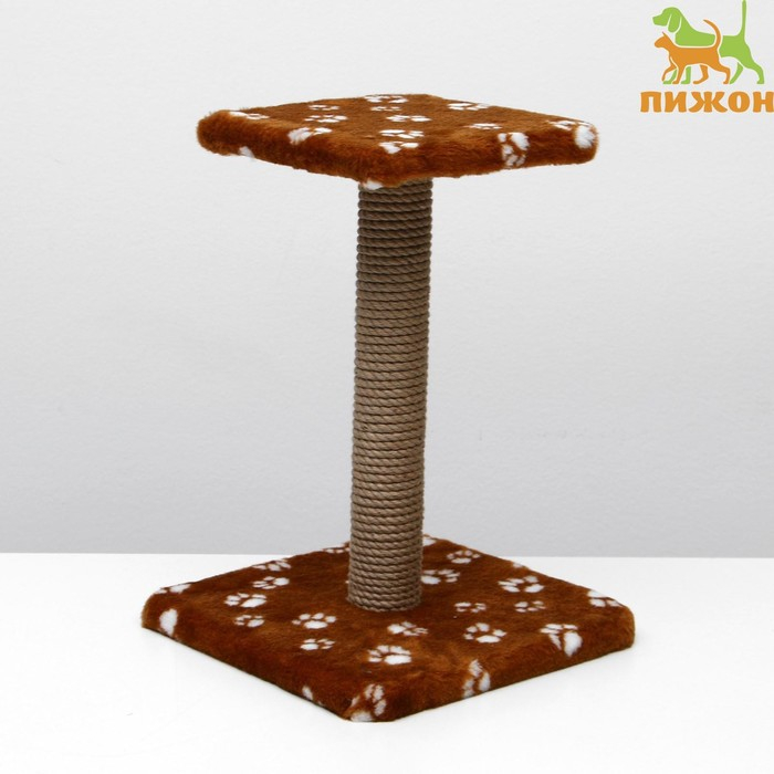 Когтеточка "Полка" с подставкой, 30 х 30 х 40 см, джут, коричневая с лапками