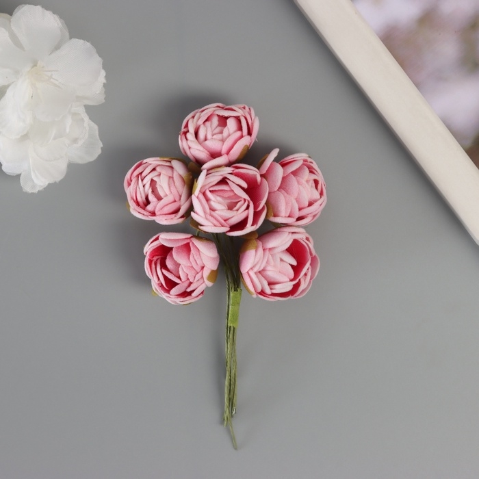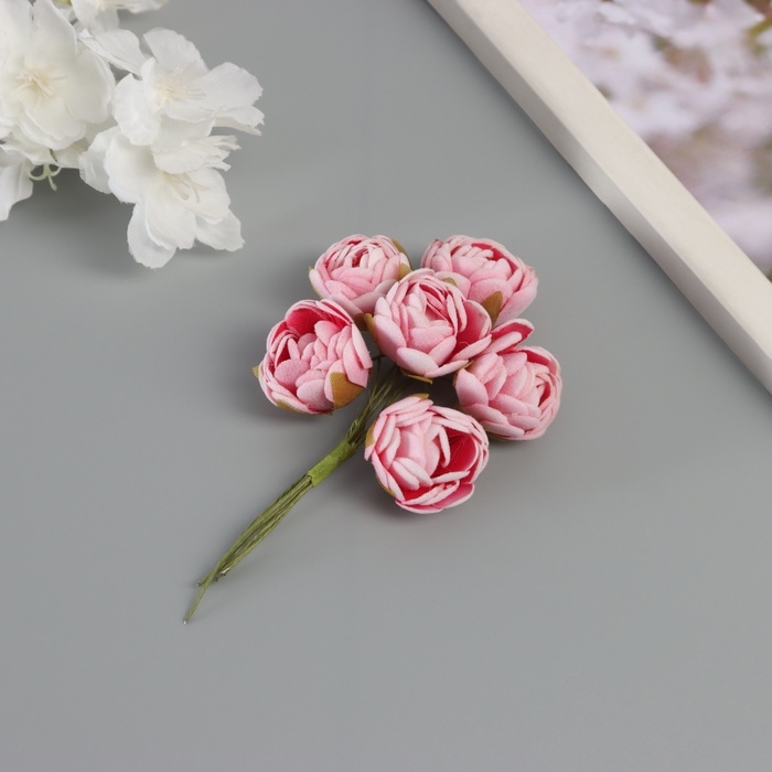 Декор для творчества "Пионы" бело-розовый (1 набор=1 букет) в букете 6 шт 2,5х10,5 см