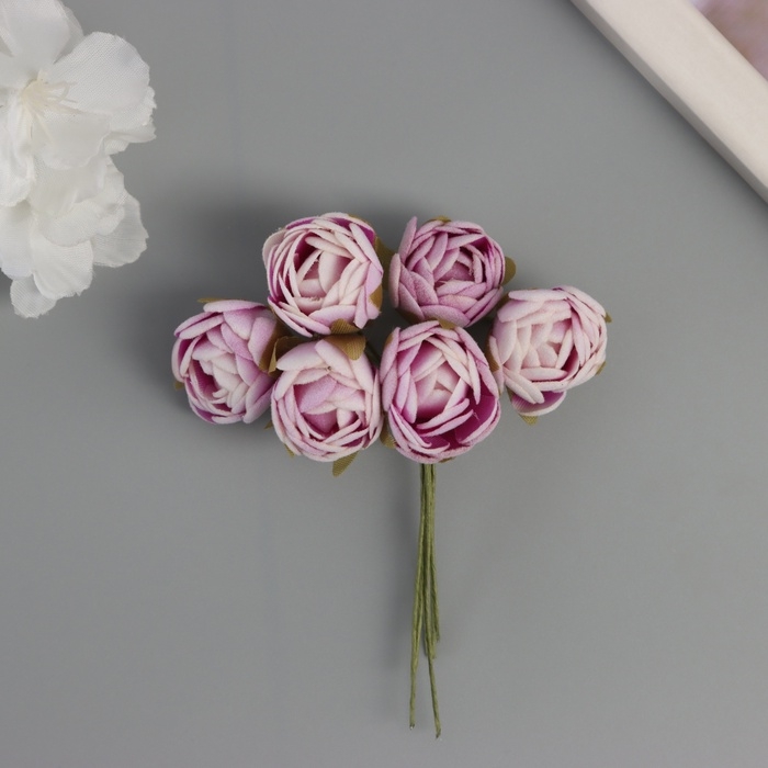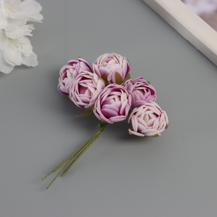 Декор для творчества "Пионы" бело-фиолетовые (1 набор=1 букет) в букете 6 шт 2,5х10,5 см