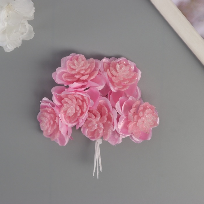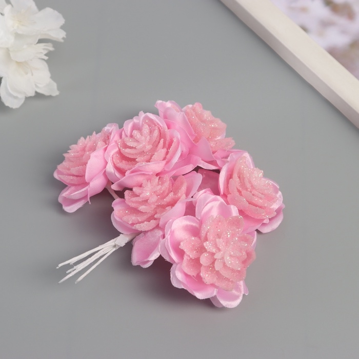 Декор для творчества "Камелия" розовый (1 набор=1 букет) в букете 6 шт 4х11 см