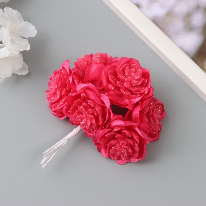 Декор для творчества "Камелия" малиновый (1 набор=1 букет) в букете 6 шт 4х11 см