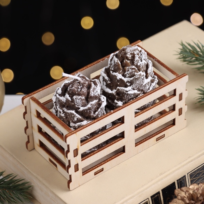 Новый год Набор свечей "две шишки", в деревянном ящике