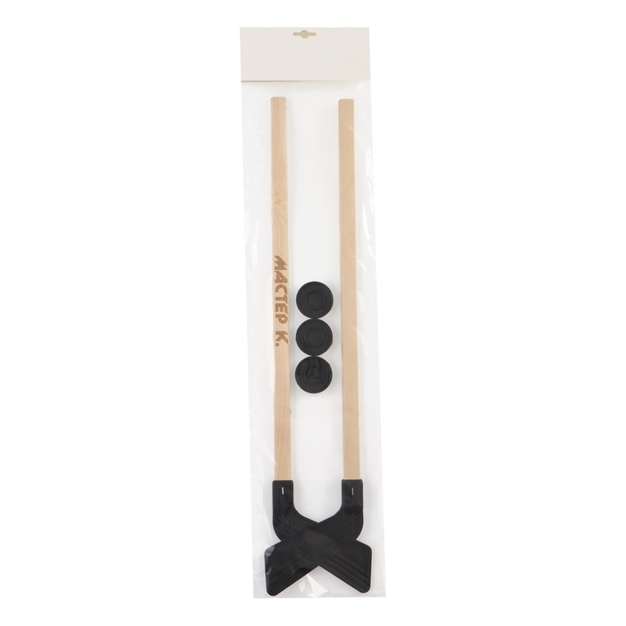 Набор 2 клюшки 3 шайбы хоккейные "Мастер К", 73 см, черные