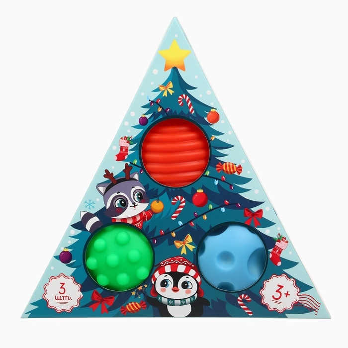 Подарочный новогодний набор развивающих тактильных мячиков «Чудеса рядом», 3 шт.