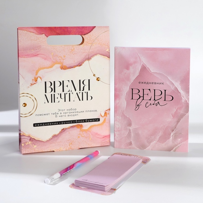 Подарочный набор ежедневник, блок бумаги и ручка "Время мечтать"