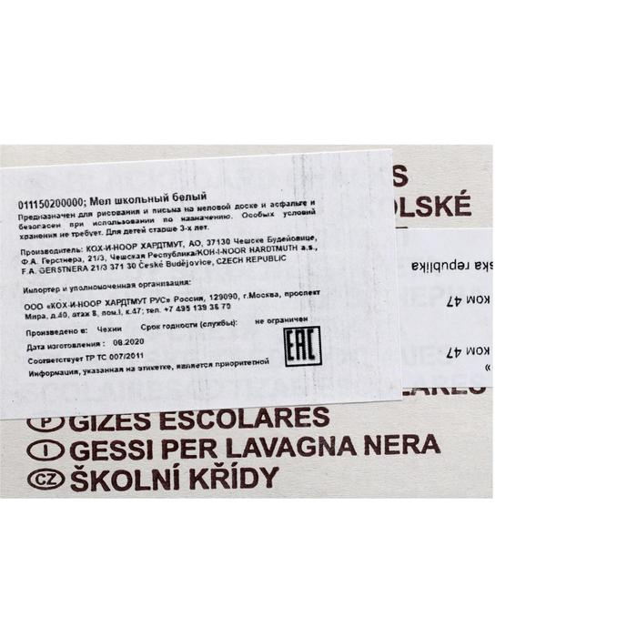 Набор мела белого 100 штук, Koh-I-Noor, 12 х 12 х 100 мм