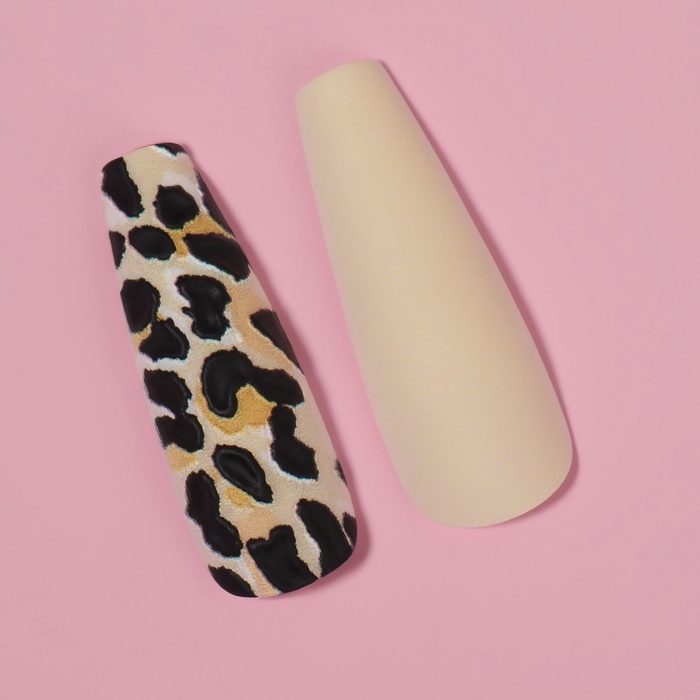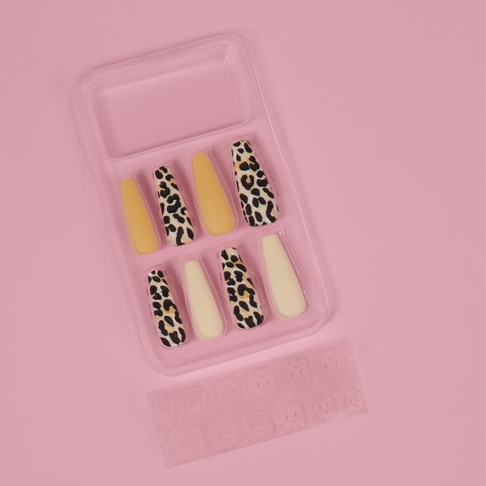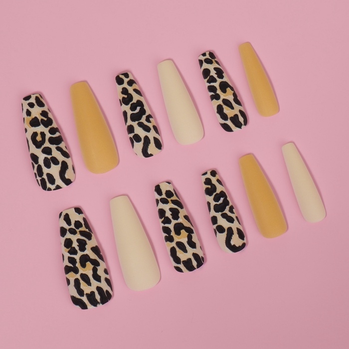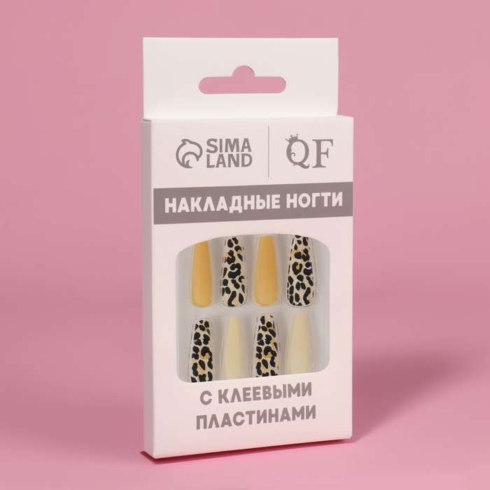 Ногти накладные с кл пластинами 12шт Leopard балерина беж/желт/чёрн к/кор QF