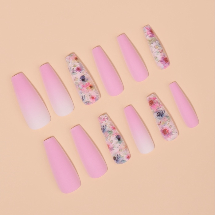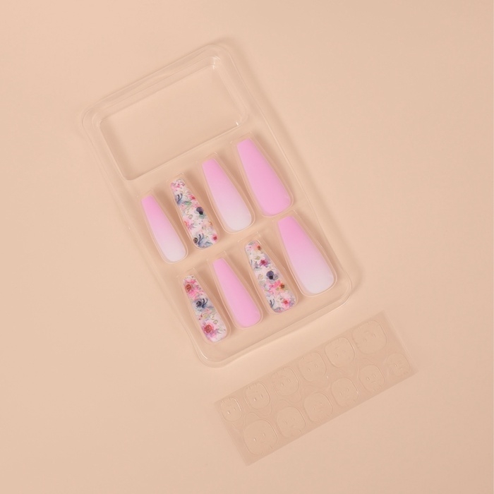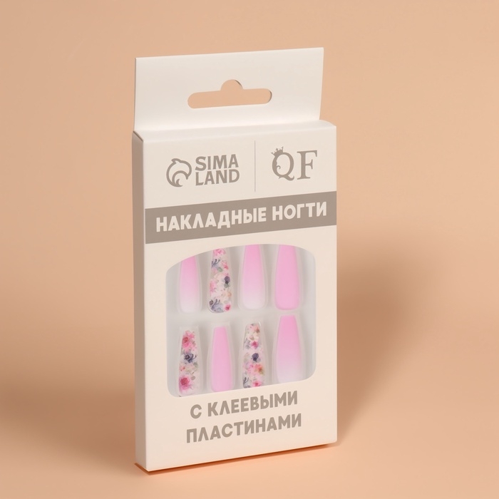Ногти накладные с кл пластинами 12шт Цветы балерина разноцв к/кор QF