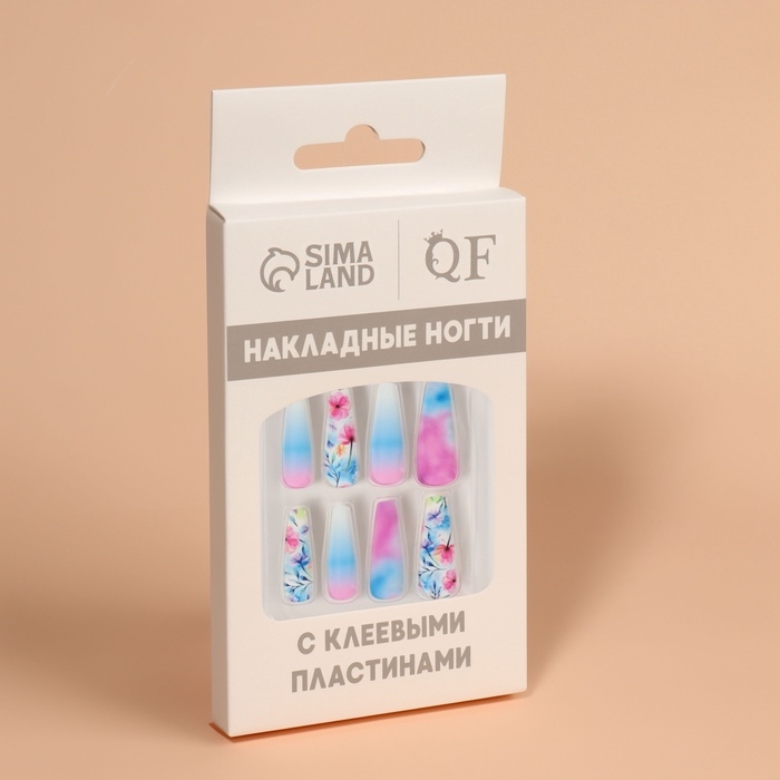 Ногти накладные с кл пластинами 12шт Море балерина голуб/роз/бел к/кор QF