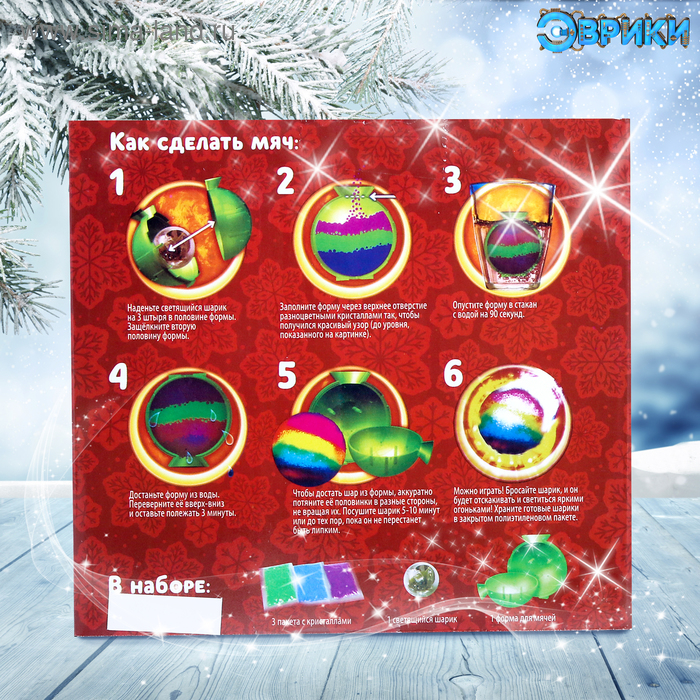 Новый год — это время волшебства! Создайте свой светящийся мяч-прыгун с помощью кристаллов, формочки и светящегося шарика.