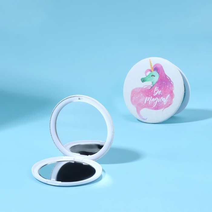 Зеркало складное (2) б/увел ЕДИНОРОГИ d7,5см пластик/бумага розов пакет QF