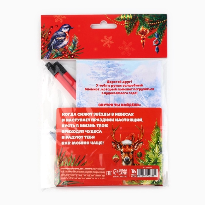 Подарочный набор новогодний, блокнот, карандаши ч/г 2 шт и восковые мелки «Сказочного Нового года!»