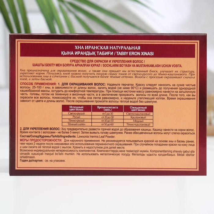 Иранская натуральная хна — экологически чистый растительный продукт. Полностью состоит из измельчённых молодых листьев субтропического растения Lawsonia Inermis.