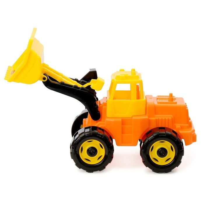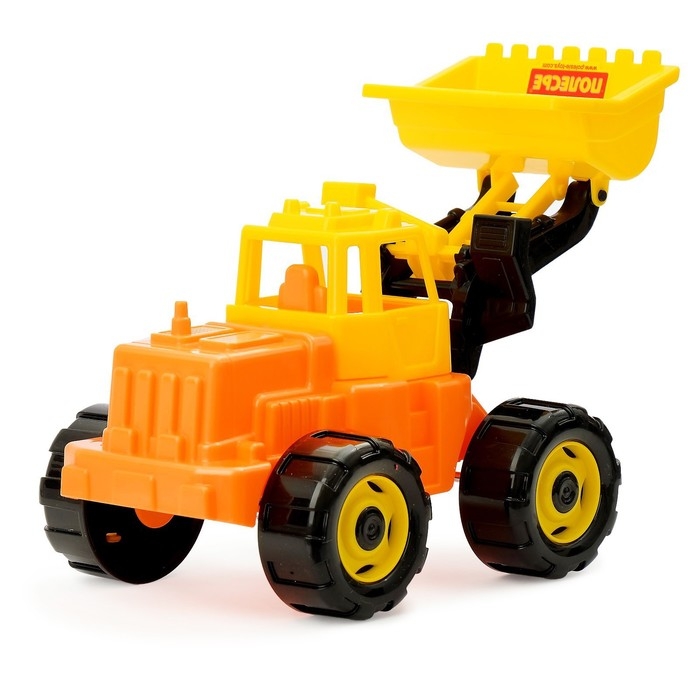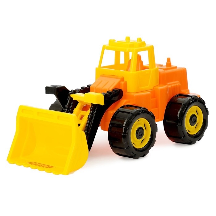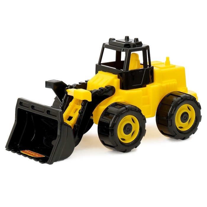 Трактор-погрузчик — незаменимая техника на любой ферме и стройке. Она оснащена широким ковшом для копания песка и мелких камушков. Такая игрушка подойдёт для развлечений дома и на улице.