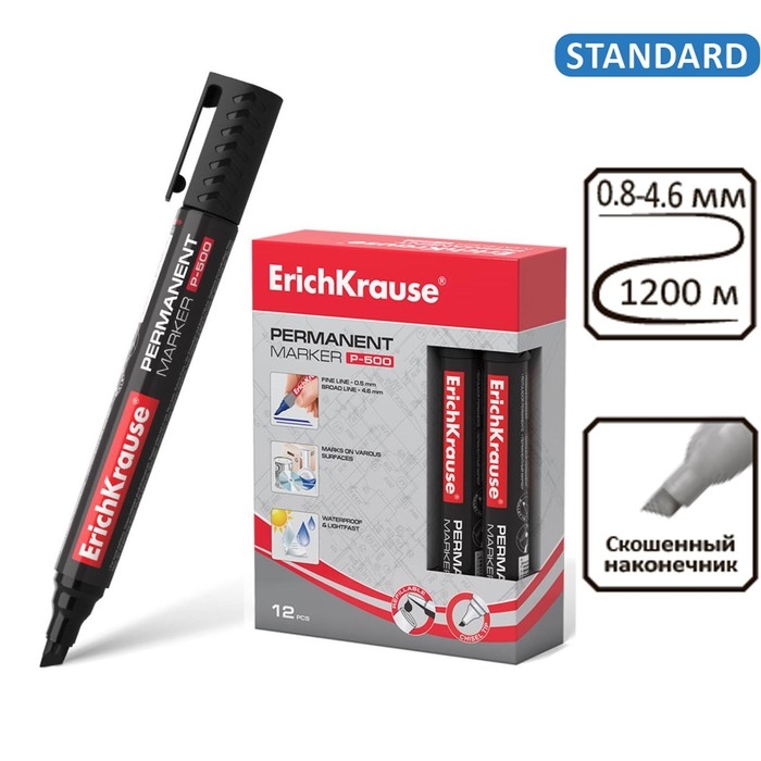 Маркер перманентный 0.5-4.6 мм Erich Krause P-500 чёрный, наконечник скошенный, чернила на спиртовой основе светостойкие, водостойкие без ксилола