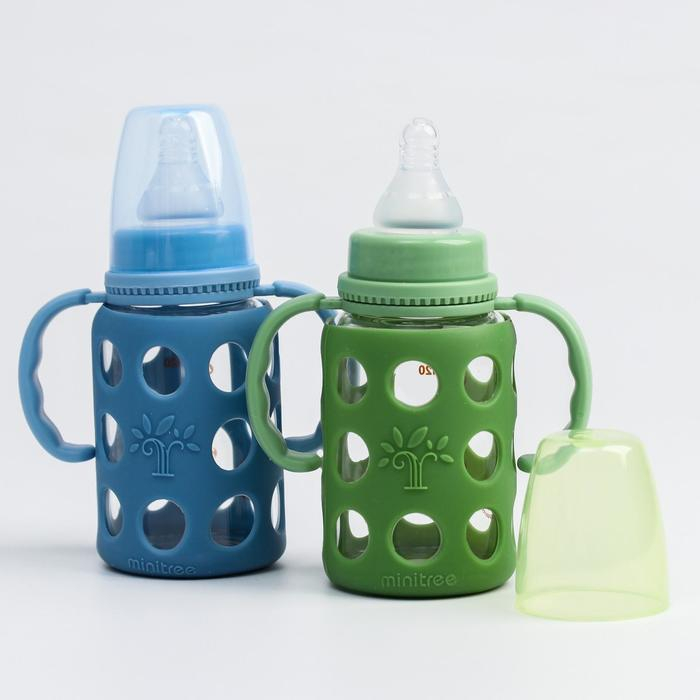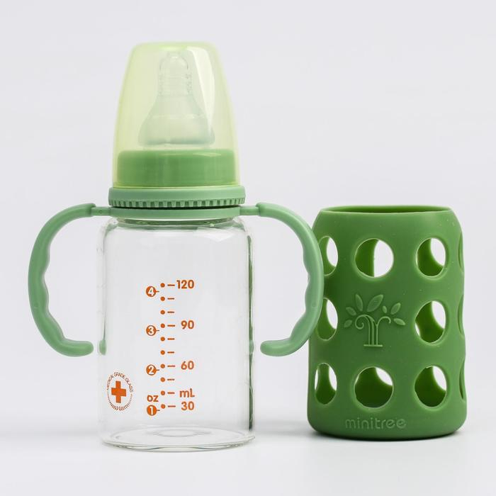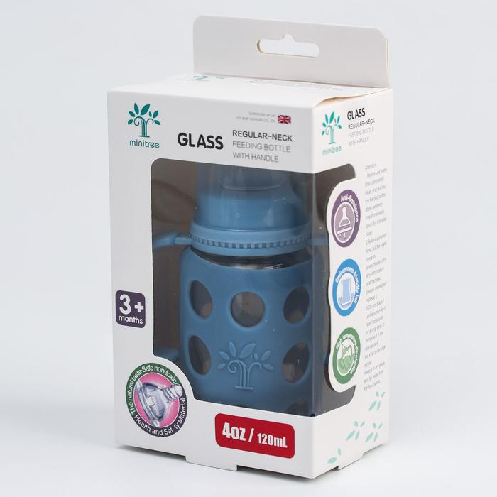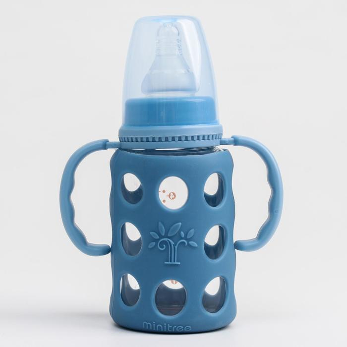 Бутылочка в силиконовом чехле, стекло, классическое горло, +3мес., 120мл., цвет МИКС для мальчика