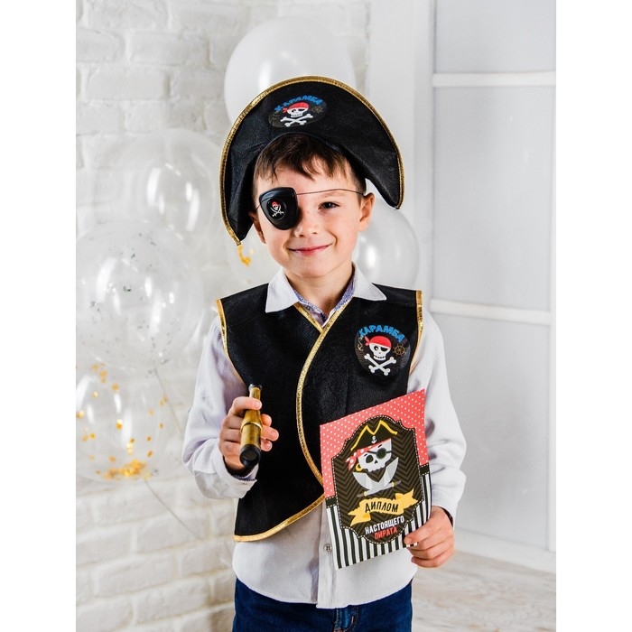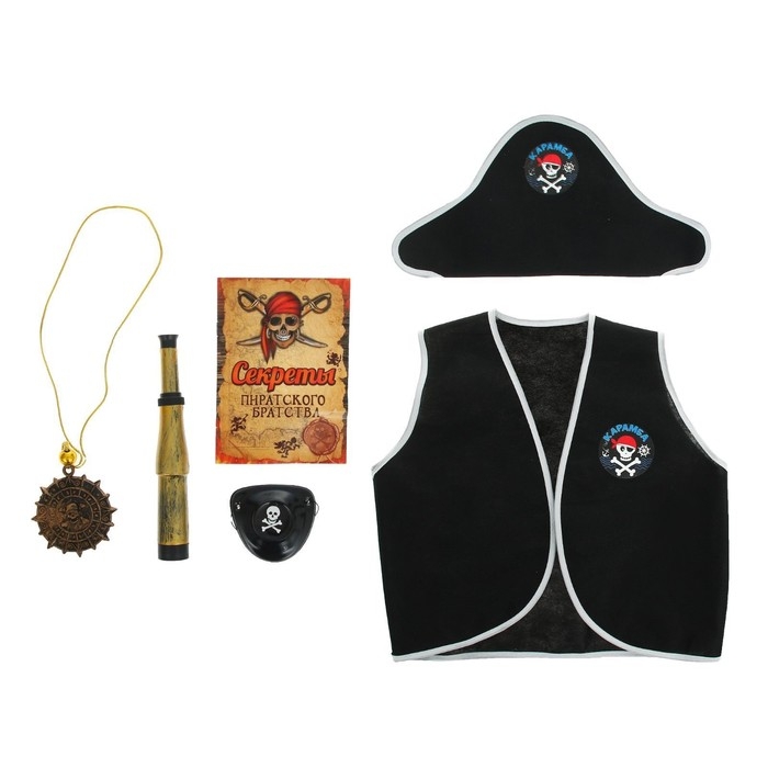 Набор пирата «Карамба», 6 предметов: шляпа, жилетка, наглазник, орден, подзорная труба, кодекс