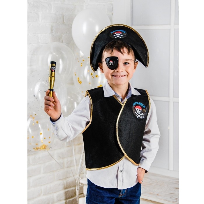 Планируете детскую тематическую вечеринку и хотите превратить ребёнка в грозу морей, бесстрашного и неукротимого капитана, а может быть, собрать целую команду? Карнавальный набор пирата прекрасно воссоздаст этот яркий образ. В комплект вошли все самые важные и узнаваемые детали персонажа, чтобы ваш малыш вжился в эту роль и стал звездой торжества.