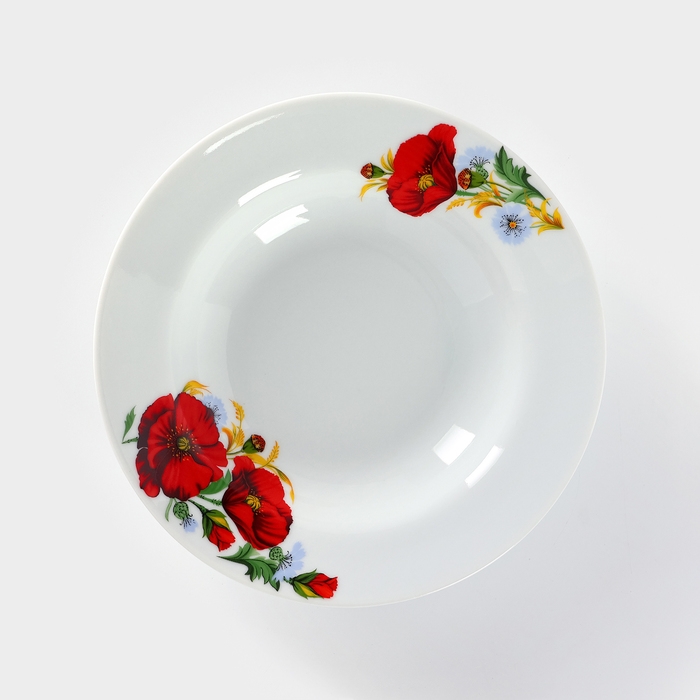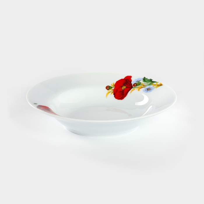 Тарелка фарфоровая глубокая «Маки красные», 250 мл, d=20 см, белая