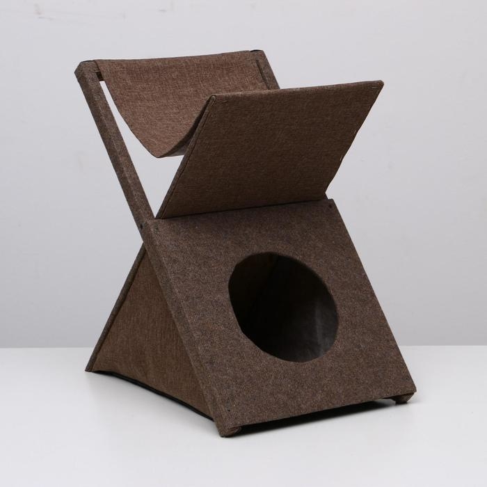 Домик для кошек с когтеточкой "Икс", раскладной с гамаком, ковролин, микс цветов