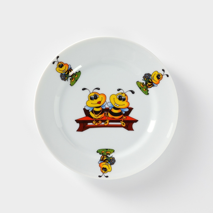 Тарелка фарфоровая «Пчёлы», d=17 см, рисунок микс, цвет белый