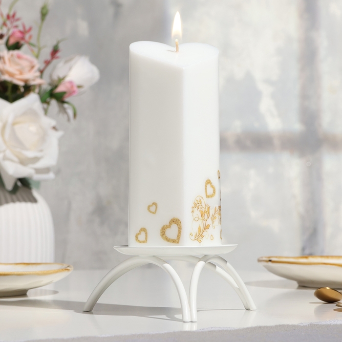 Свеча свадебная "Сердце", 6,8х15 см, белая, домашний очаг