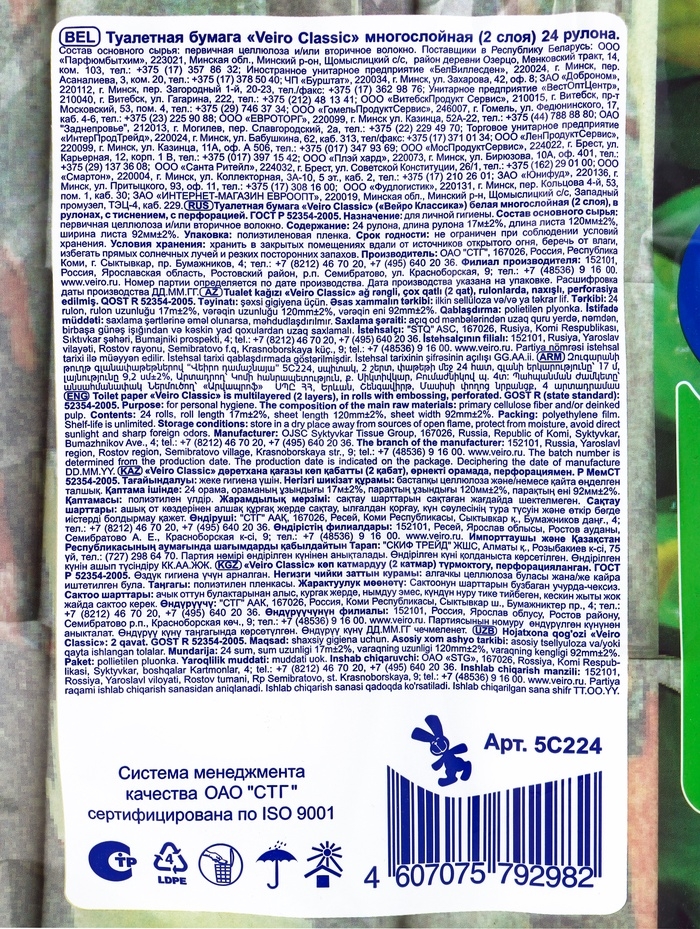 Туалетная бумага Linia VEIRO Classic, белая, 2 слойная, 24 шт.