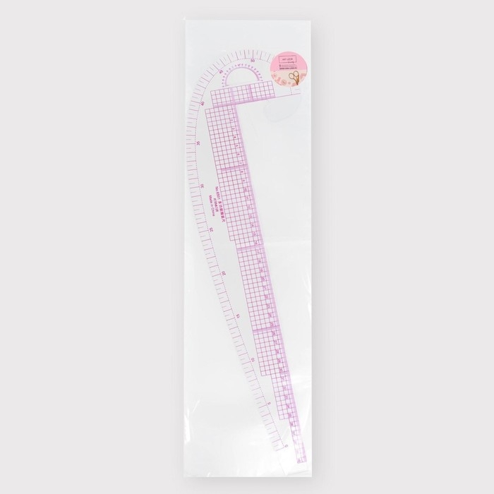 Лекало портновское метрическое «Рыбка», с проймой, 52 × 13 см, толщина 0,5 мм, цвет прозрачный
