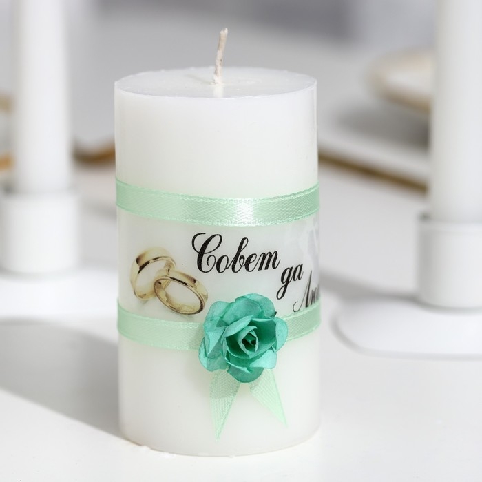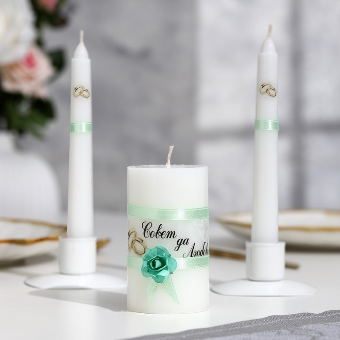Набор свечей свадебных "Совет да любовь с розой"мятный:родительские 1,8х15см,очаг 5х9,5см