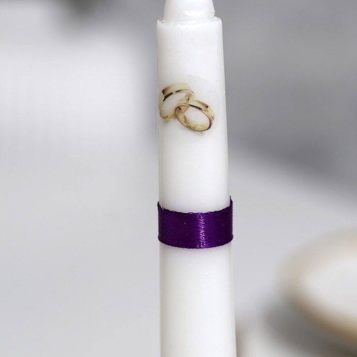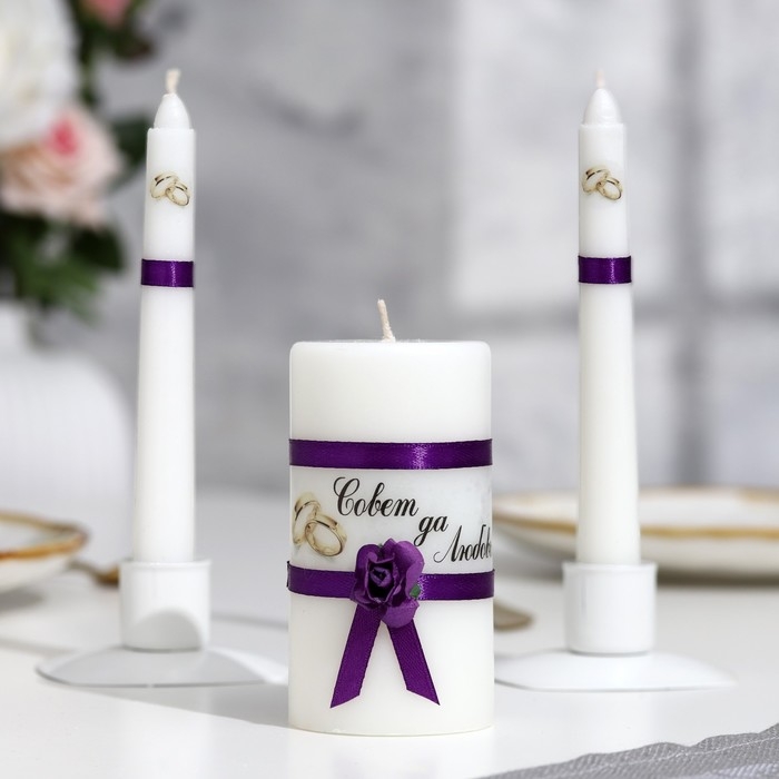 Набор свечей свадебных "Совет да любовь с розой"фиолетовый:родительские 1,8х15,очаг 5х9,5см