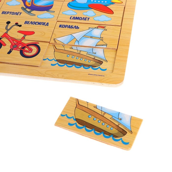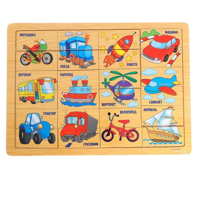 - Расширяйте словарный запас. Предложите малышу внимательно рассмотреть и собрать картинки из отдельных частей. В конце игры спросите, как называется тот или иной транспорт и на какую букву начинается слово.