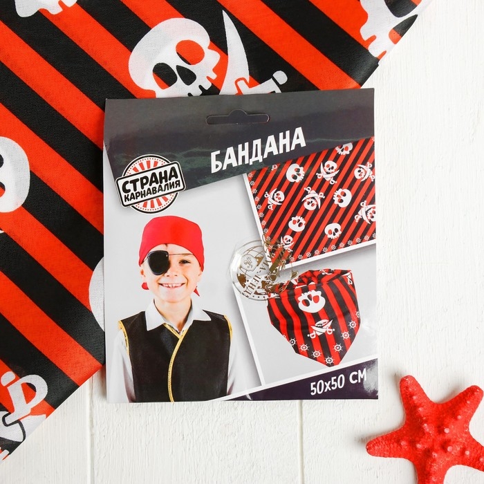 Бандана «Настоящий пират», детская, 50х50 см — одна из самых универсальных деталей гардероба. Используйте её как карнавальный аксессуар или для повседневного образа. Бандану можно надеть на шею, запястье или украсить ею рюкзак. Повязанная на лицо вещь прекрасно защитит дыхательные органы от пыли. Такой платок станет незаменимой деталью при занятиях спортом. И, конечно, он отлично выполнит свою основную функцию: оградит голову от солнечных лучей.