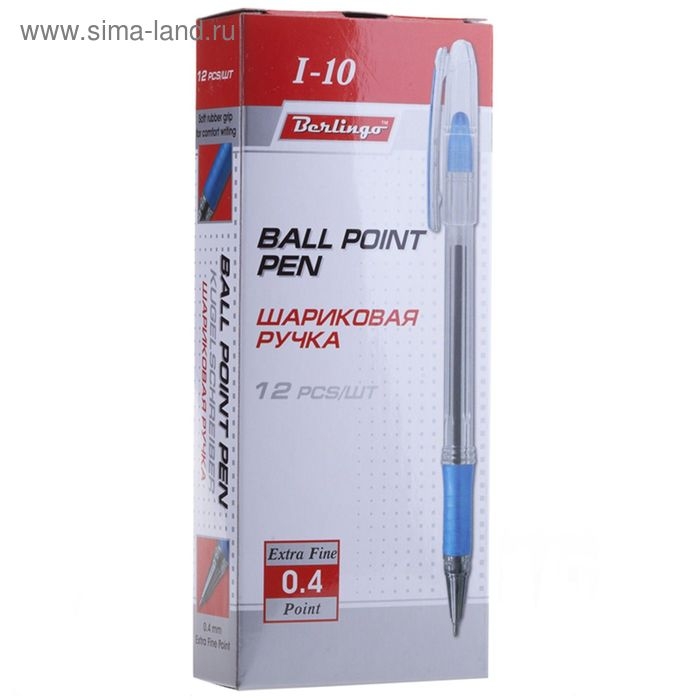 Ручка шариковая 0.4 мм, I-10, чернила синие, грип