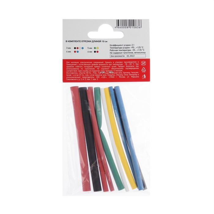 Термоусаживаемая трубка 3/4/5/6 набор (3/4мм -3 цв, 5/6 мм-2 цв 10 cм), 10 шт
