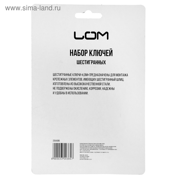 Набор ключей шестигранных марки LOM предназначен для монтажных и демонтажных работ.