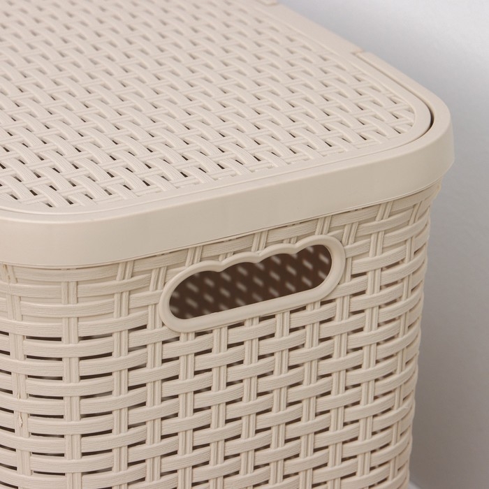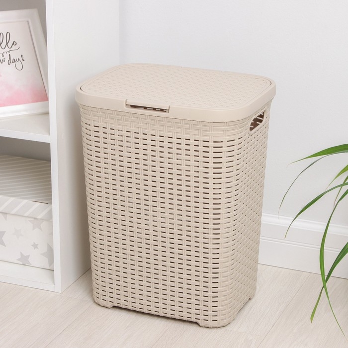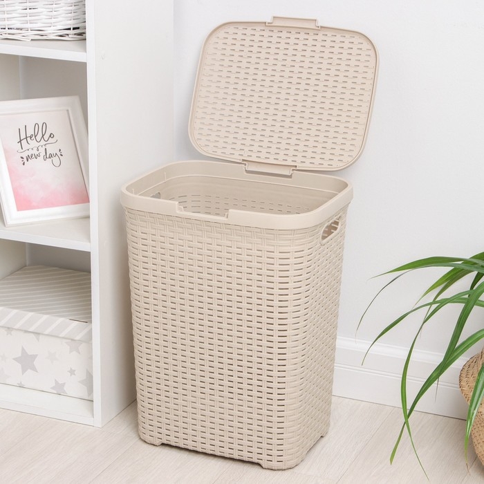 Корзина бельевая с крышкой «Ротанг», 40 л, 37×29,5×48 см, цвет латте