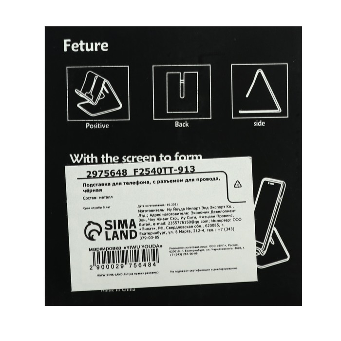 Подставка для телефона, с разъемом для провода, металл, чёрная