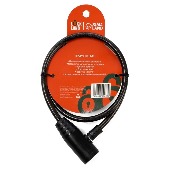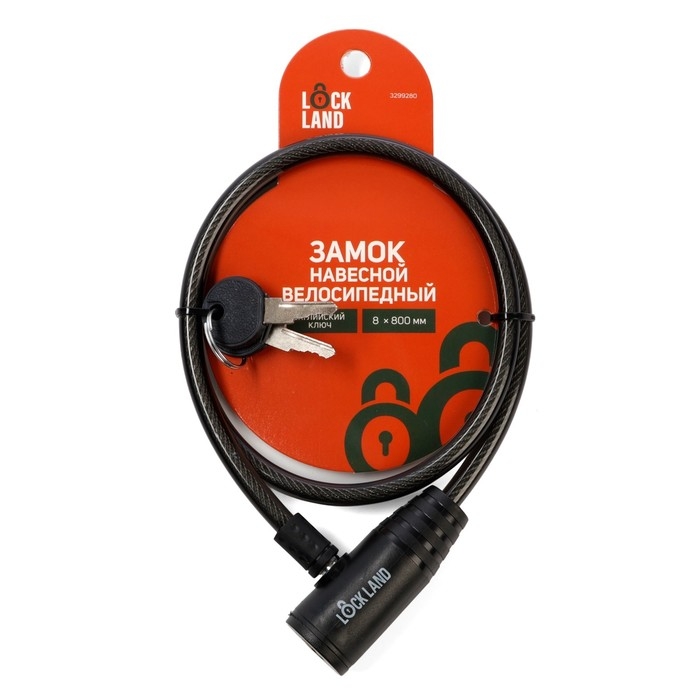 Замок навесной велосипедный LOCKLAND, 8х800 мм, английский ключ с пластиковой ручкой
