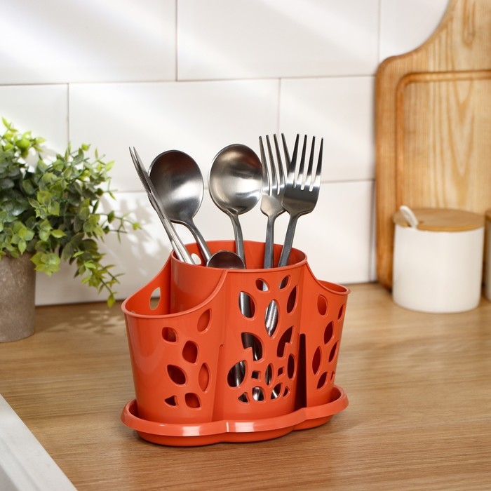 Подставка для столовых приборов «Камелия», 3 отделения, цвет МИКС