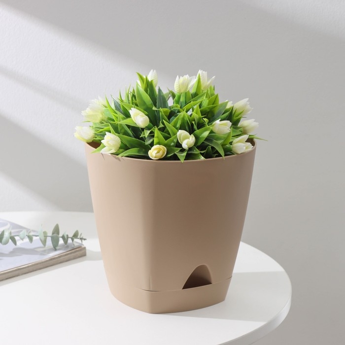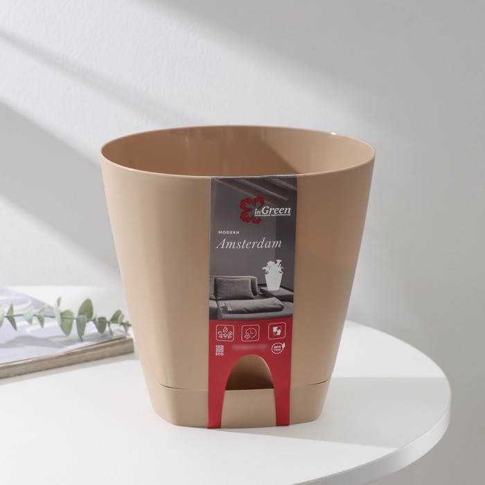 Горшок для цветов с прикорневым поливом Amsterdam, 4 л, цвет молочный шоколад