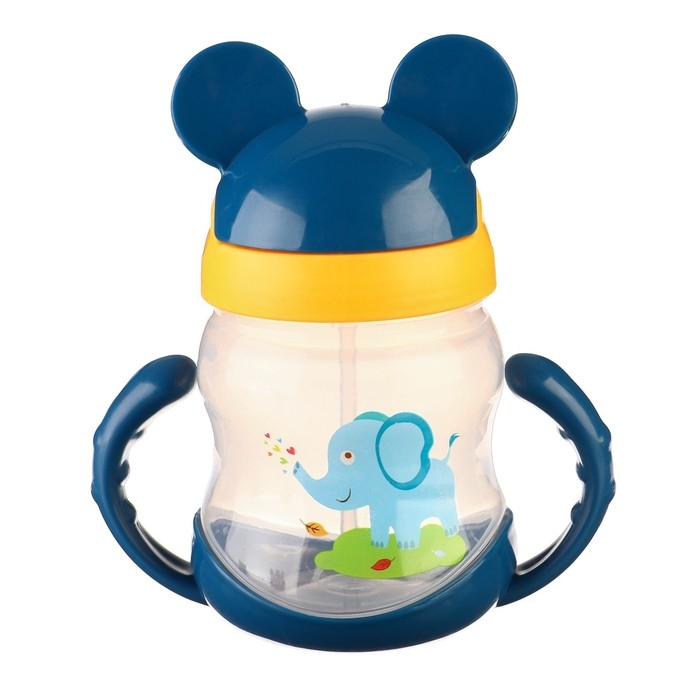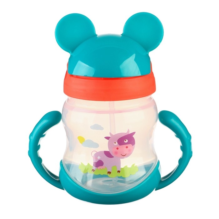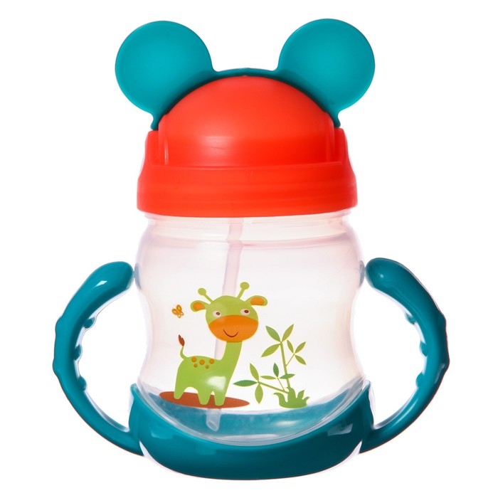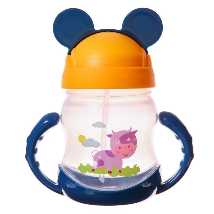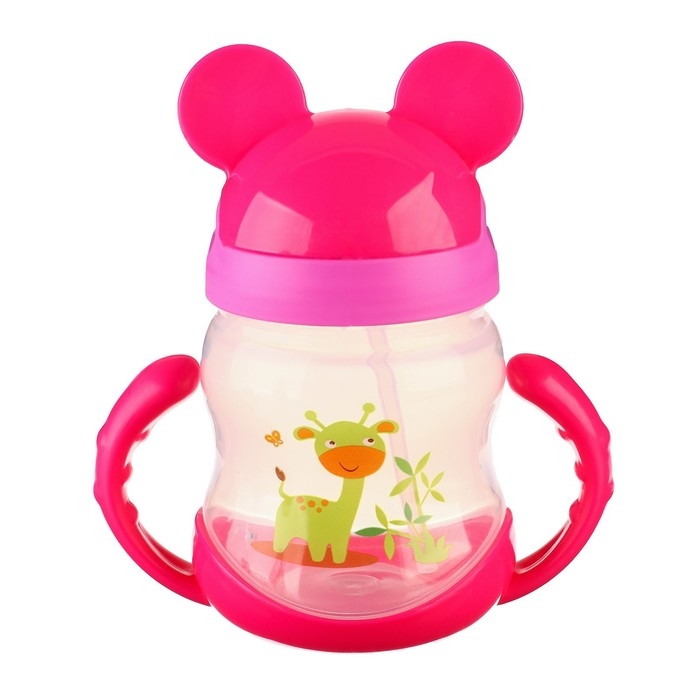 Поильник детский с силиконовой трубочкой, 250 мл., с ручками, цвет МИКС