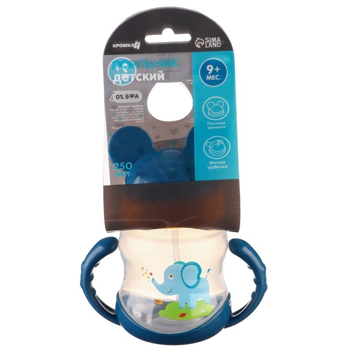 Поильник - непроливайка детский с силиконовой трубочкой и грузиком, от 9 мес., 350 мл., на ленте, цвет голубой, Крошка Я